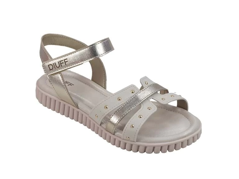 Sandalia Diuff confeccionada en sintético mate y brillante, con ajuste de velcro. Su interior está realizado en pecarí. Suela T.R.