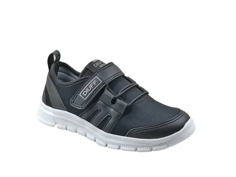 Zapatilla Diuff confeccionada en set y sintético, con ajuste de velcro y cordones elastizados. Su interior está realizado en set. Suela en material goma EVA.
