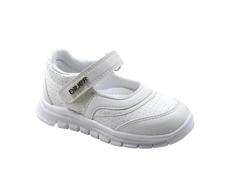 Guillermina Diuff confeccionada en sintético metalizado y mate, con ajuste de velcro. Su interior está realizado en piqué. Suela en material EVA.