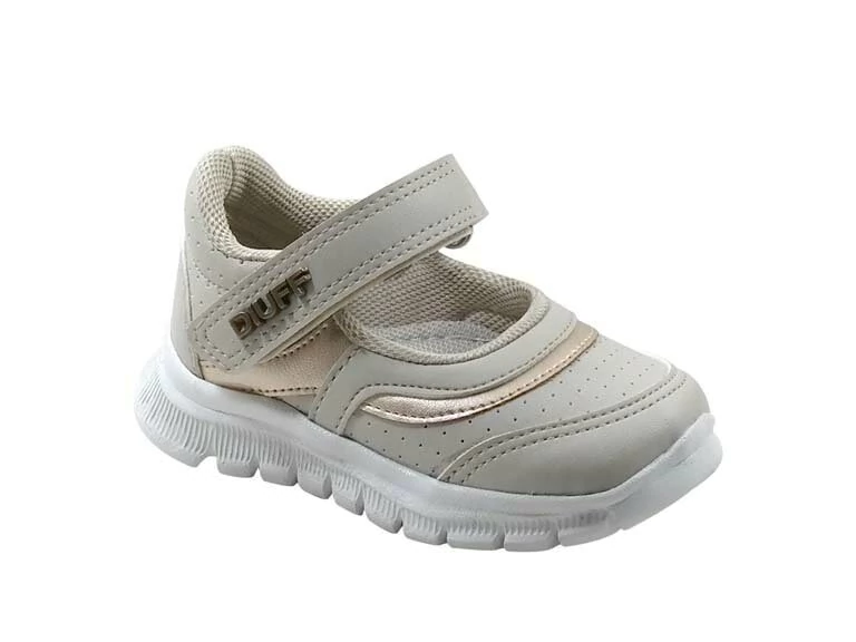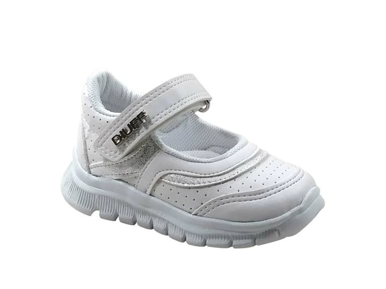 Guillermina Diuff confeccionada en sintético metalizado y mate, con ajuste de velcro. Su interior está realizado en piqué. Suela en material EVA.